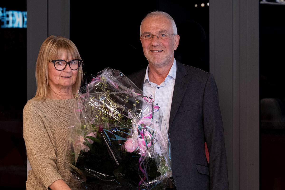 Herr Köder überreichte Frau Ulrike Thomae einen Blumenstrauß als Dank für die jahrelange Begleitung.