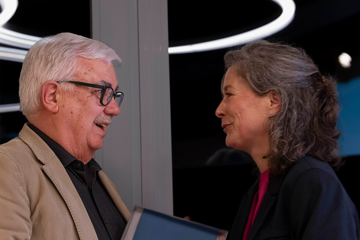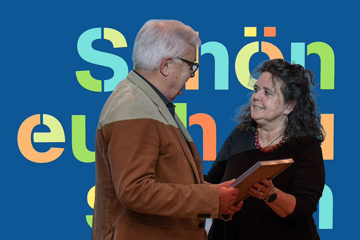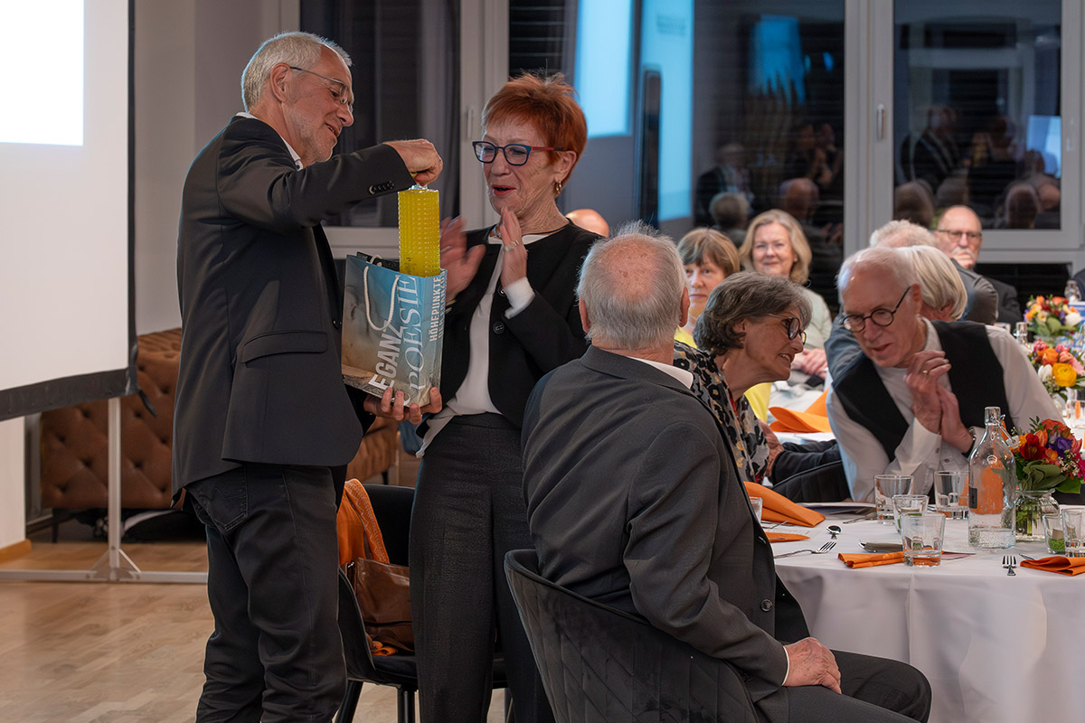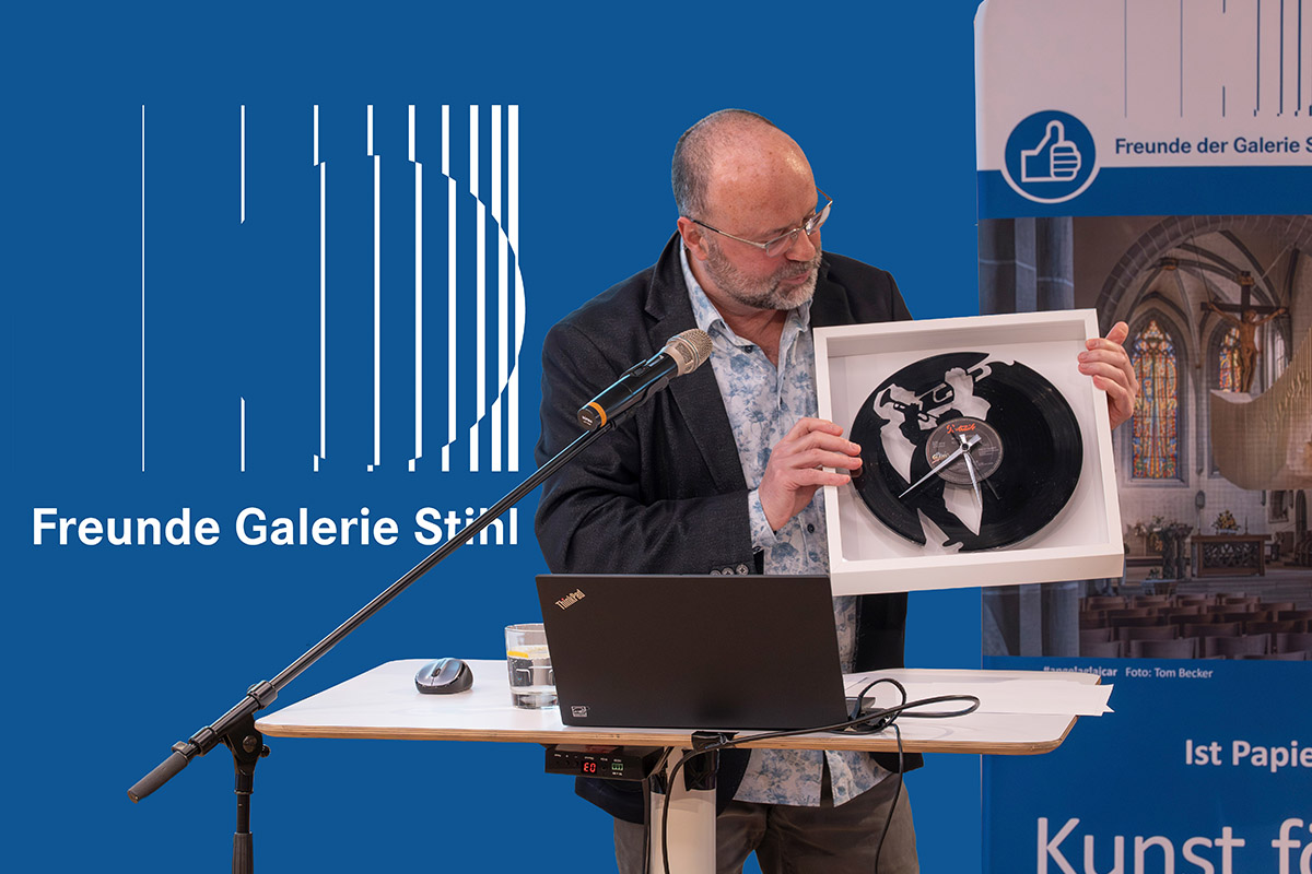 Dr. Hansjörg Thomae wurde in einer Laudatio von seiner Nachfolgerin Juliane Sonntag gewürdigt. Sie sprach dabei von einer Zeitenwende, verlasse mit Hansjörg Thomae doch das letzte echte Gründungsmitglied den Kreis des Vorstands. Inhaltlich indes, werde es keine Wende geben: die Freunde der Galerie Stihl Waiblingen würden den Entwicklungen der Zeit trotzen und weiter auf Kunst und Kommunikation setzen und die Kultur in Waiblingen, konkret die Galerie Stihl, fördern. Und das gerade in Zeiten, in denen vielerorts die Unterstützung für die Kultur wegbreche.